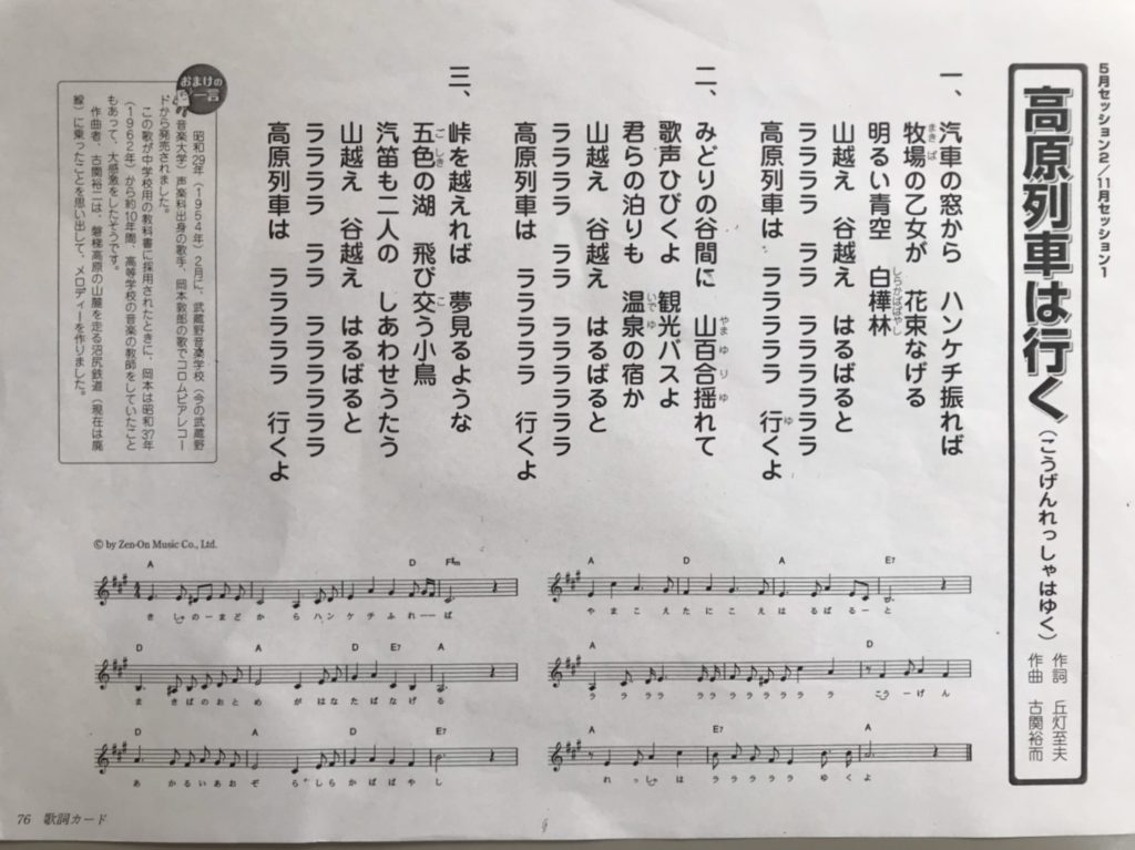 特に「高原列車は行く」の『ラララララ 行くよ〜』は皆様リズミカルに、元気に歌って下さっています!