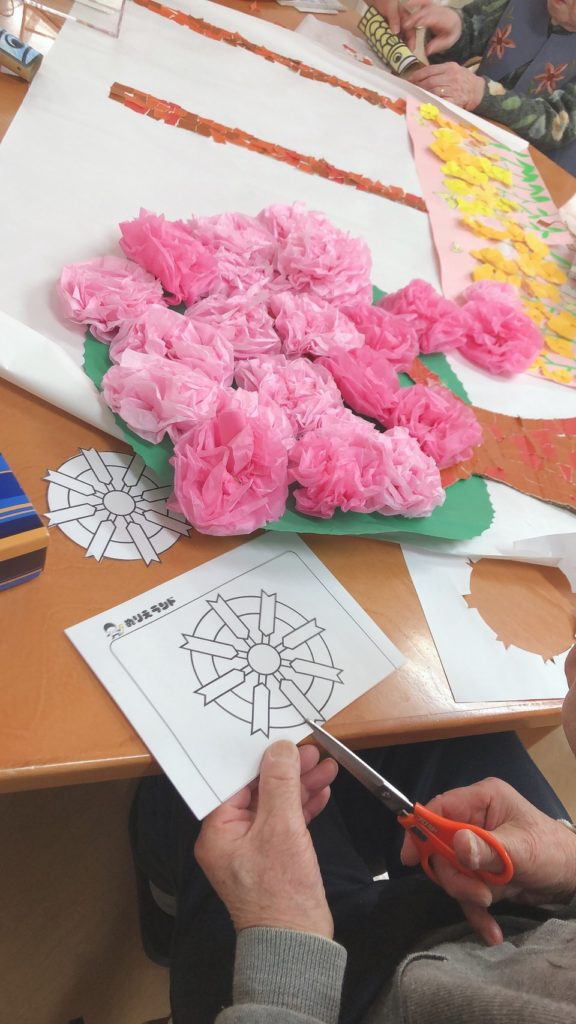 ハサミが得意な人、手先が器用で紐をくくりつける人、皆さんそれぞれ役割分担をして大作を完成させる予定ですヾ(´▽`*)ゝ
