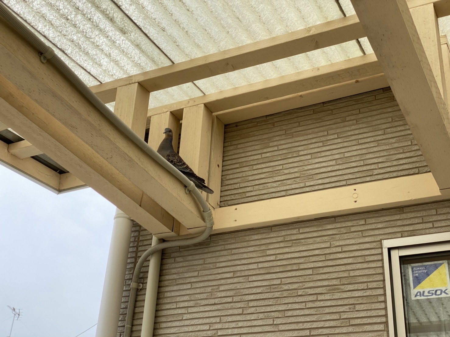 同日の昼には反対側で鳩が巣を作り始めようとしていました💦