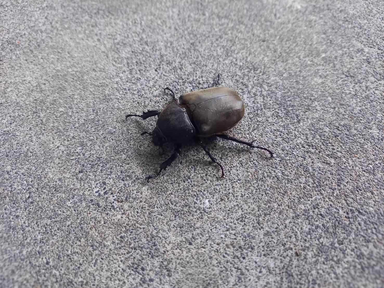 なぜか階段の日陰にいるカブトムシ。意外と熱に弱いらしいです💦暑くなったら日陰に行くは昆虫も人間も同じですね😁