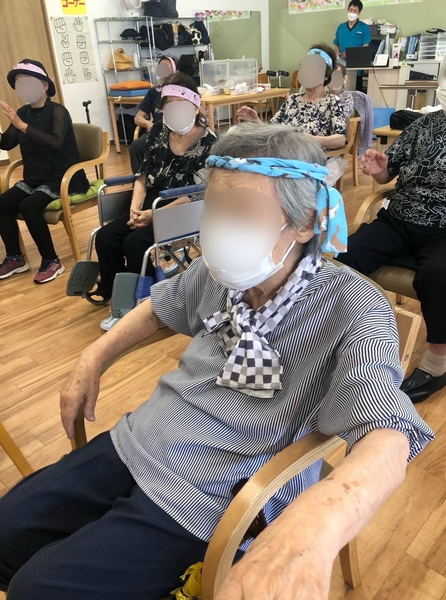 最初は恥ずかしがっていた利用者様も、だんだんと踊り始めてくれていい笑顔。
