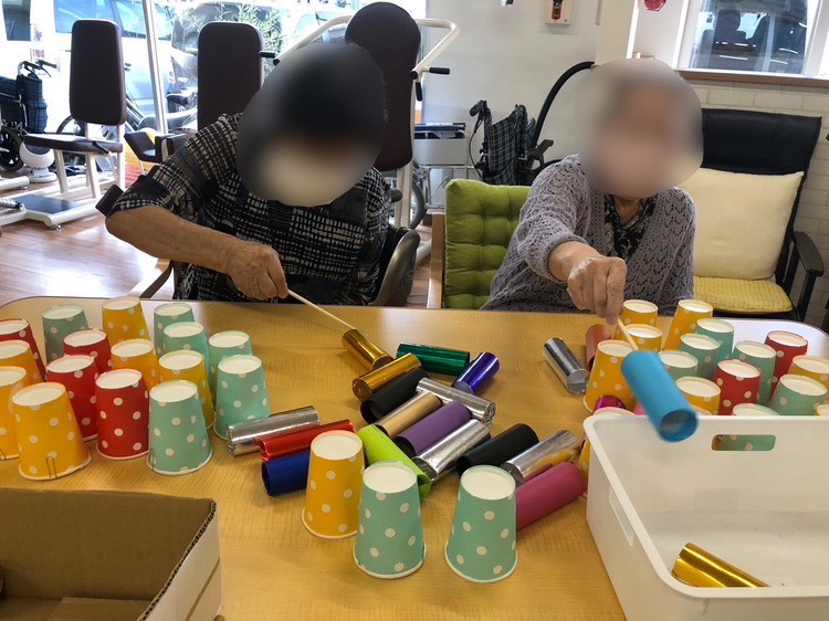 皆さん真剣にホイホイとカップや芯を取っていました。いつもは笑顔で優しい方も勝負ごとになると目の色変えて真剣に取り組んでくださるので、スタッフもやりがいを感じています!!