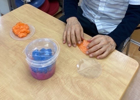 指先の訓練では、ペットボトルの蓋の開け閉めや、スライム状のように柔らかいものを均等にちぎっていく動きなど。