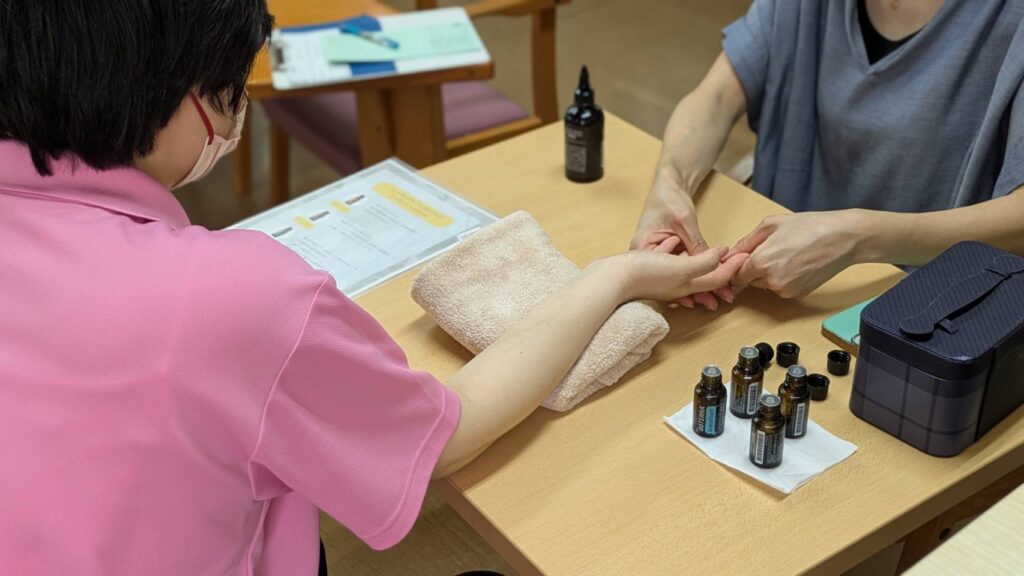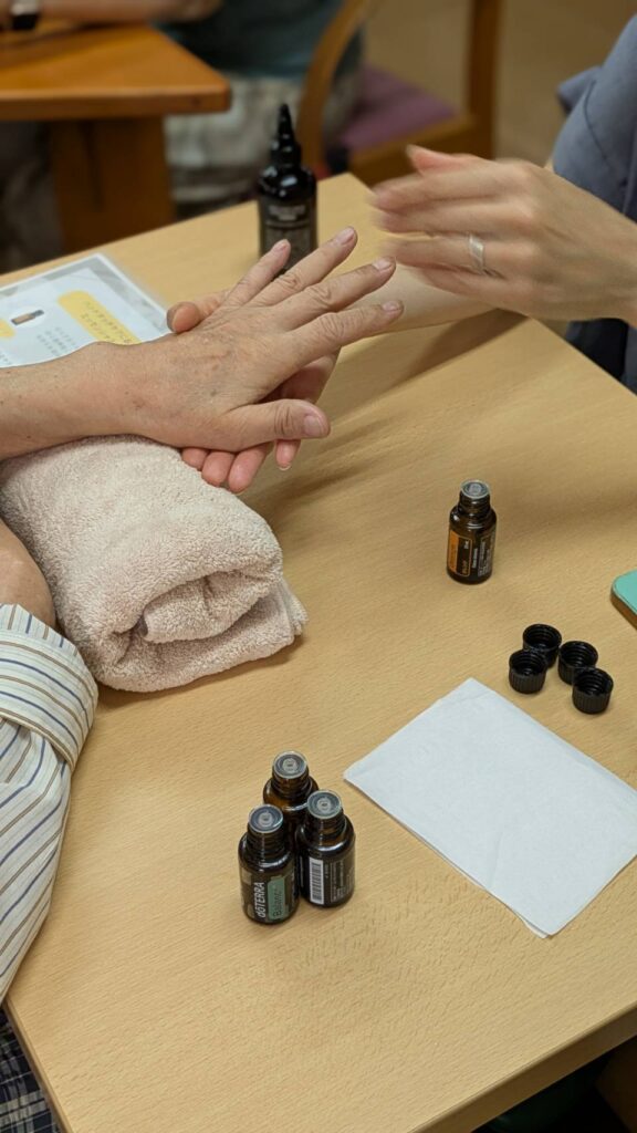 さて、本日、リハビリディではハンドマッサージの先生方をお招きし、利用者様にアロマオイルを使ったハンドマッサージを楽しんで頂きました😊