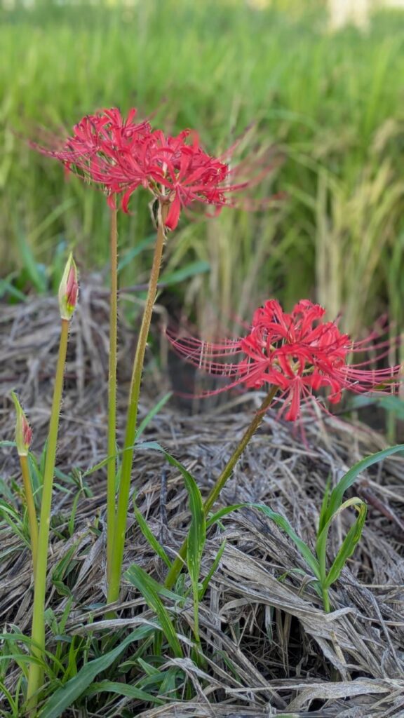 私は先日、家の近所でジュズ玉と彼岸花を見つけました
