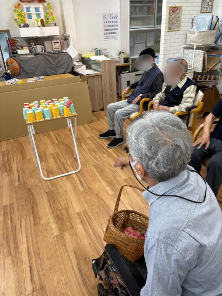 投げるのが得意な方もそうでない人もいるかと思いますが、レク中ではそんなことは関係なくみんなで楽しく、コミュニケーションも取りながらやることが大切な事です。