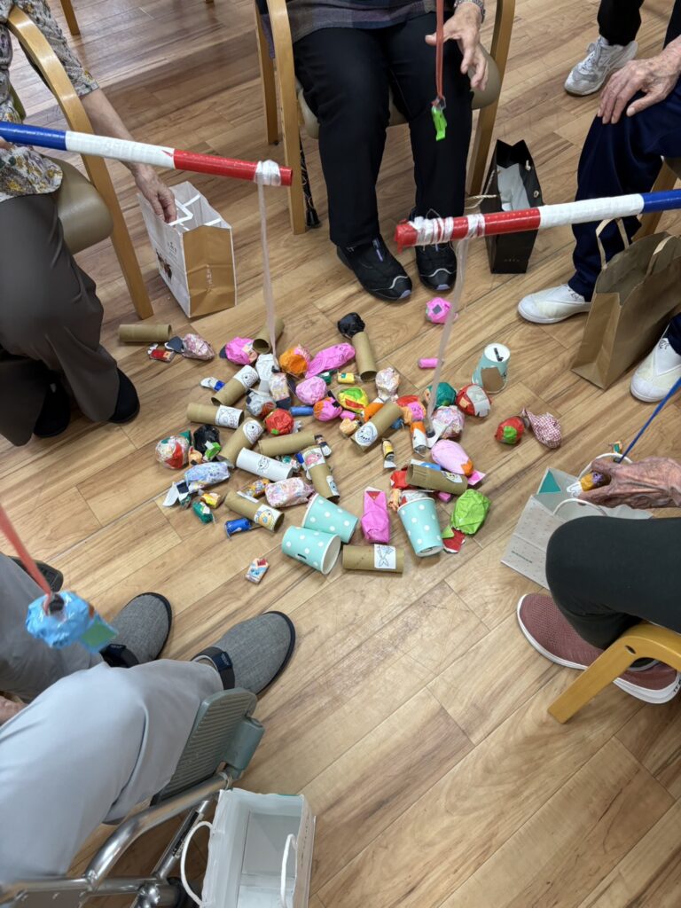釣り堀 2025.10.23デイサービス部門, ブログ, 東新田 こんにちは😊 東新田デイの西岡です。 昨日はとても寒い1日でした。 一気に冬が来たような気候でしたね☃❄ 今朝の富士山には雪が降りかかっていました🗻今年初冠雪です!冬の富士山は一段と綺麗に見えますね✨ レクは釣り堀をしました°・🐠 大きい魚や小さい魚と種類が豊富で「これ美味しそう〜」、「私これ釣る!」なんて言いながら釣られていく魚たち🎣 大物を釣れた方もいて皆さんとても楽しそうにされていました✨> デイサービス部門, ブログ, 東新田 防災訓練 ホットパック