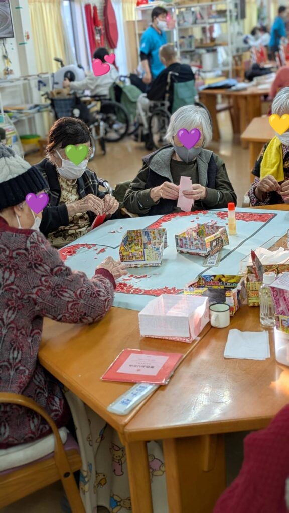 みんなで協力しながら仕上げる事で会話も弾み、笑顔も見られます