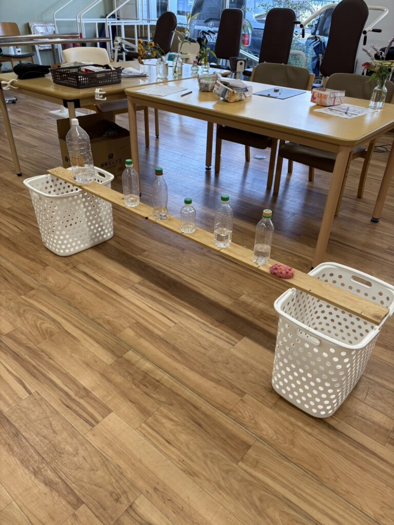 ペットボトルの間をすり抜けたりと利用者様もハラハラドキドキ(ドキドキ)