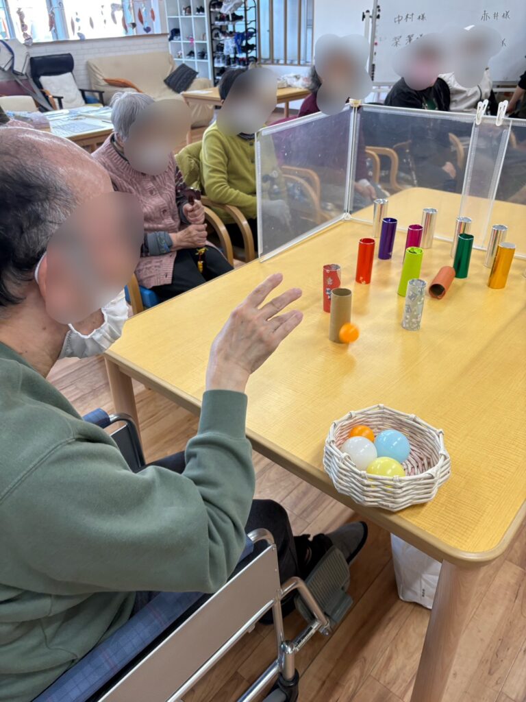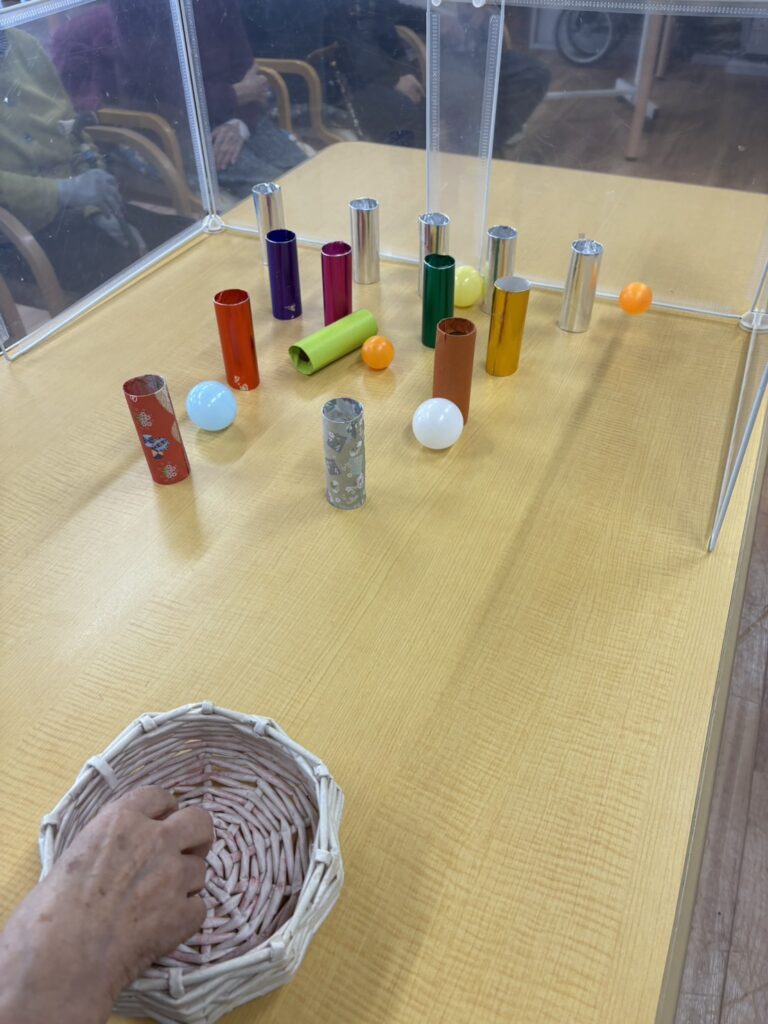 レクは、ピンポン球をバウンドさせて芯を倒すゲームです。