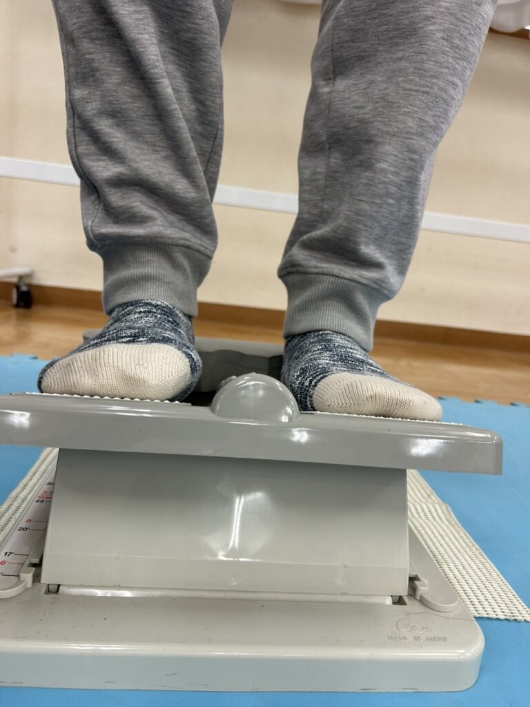 個別訓練でも麻痺のある方に乗っていただき、ふくらはぎを伸ばしています🦵