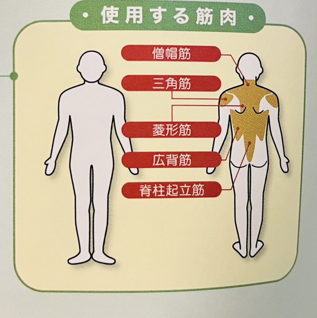 広背筋、菱形筋を強化して高齢者特有の円背(猫背)を予防・改善します