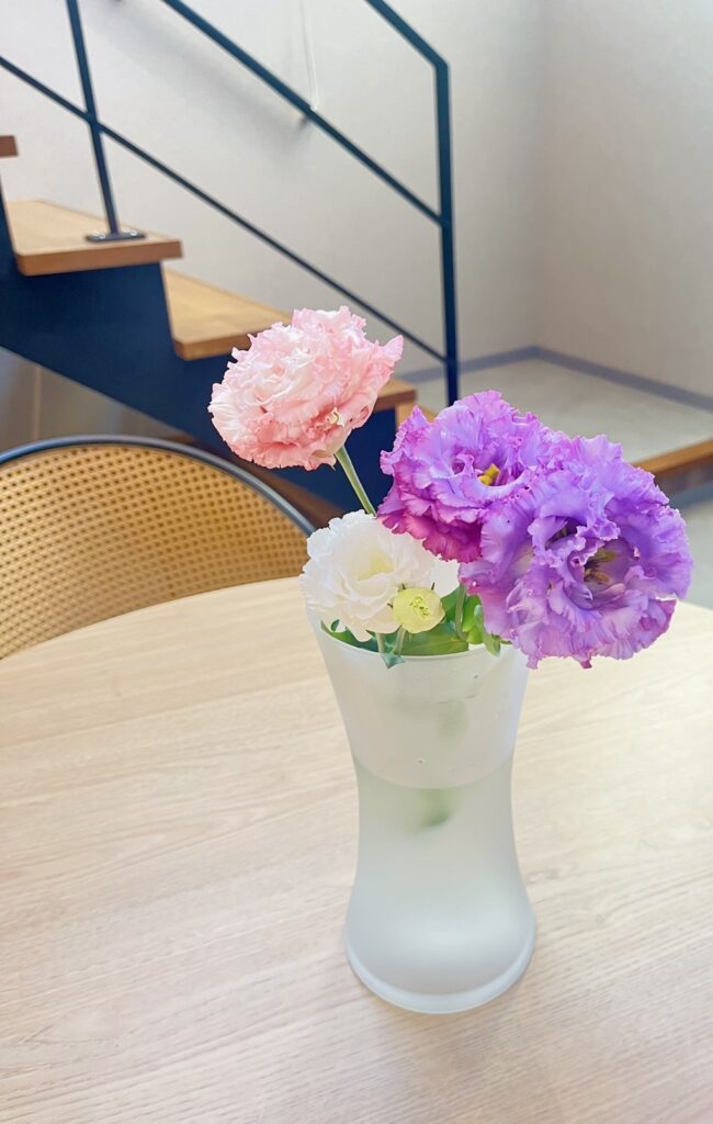 ご利用者様が”トルコキキョウ”を持ってきてくださりカフェスペースに飾らせていただきました💐